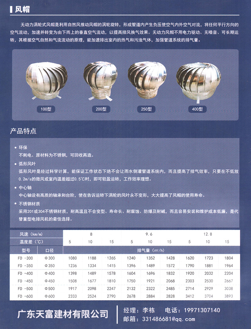 風(fēng)帽的產(chǎn)品特點(diǎn)和規(guī)格尺寸